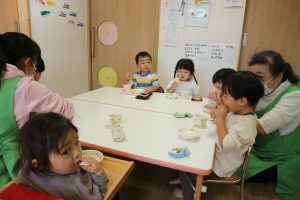 名古屋市南区にある小規模保育所『いーぐるはうす』での保育の様子をご紹介♪ いーぐるはうすの1日シリーズ☆ 第5回目は… 『おやつ』…