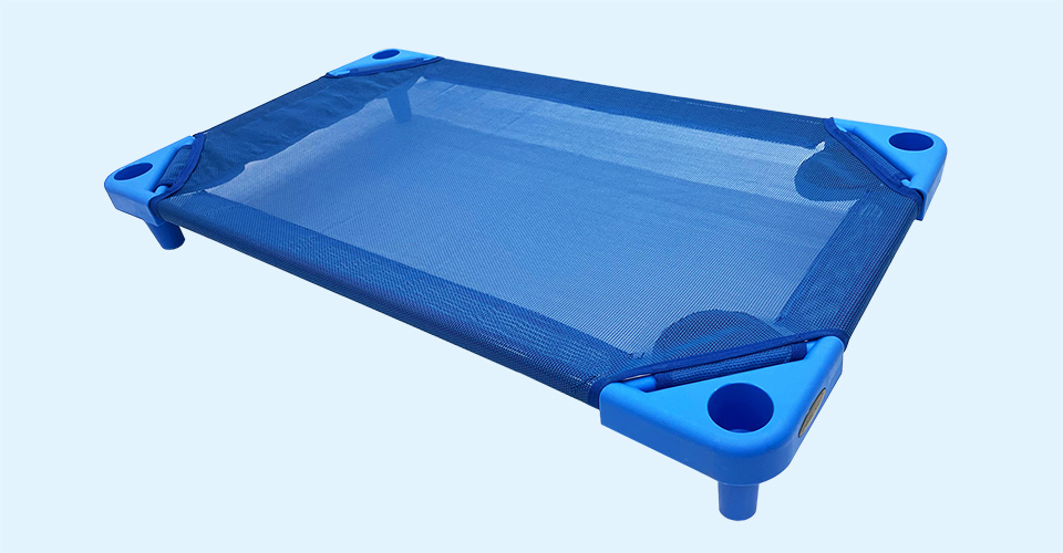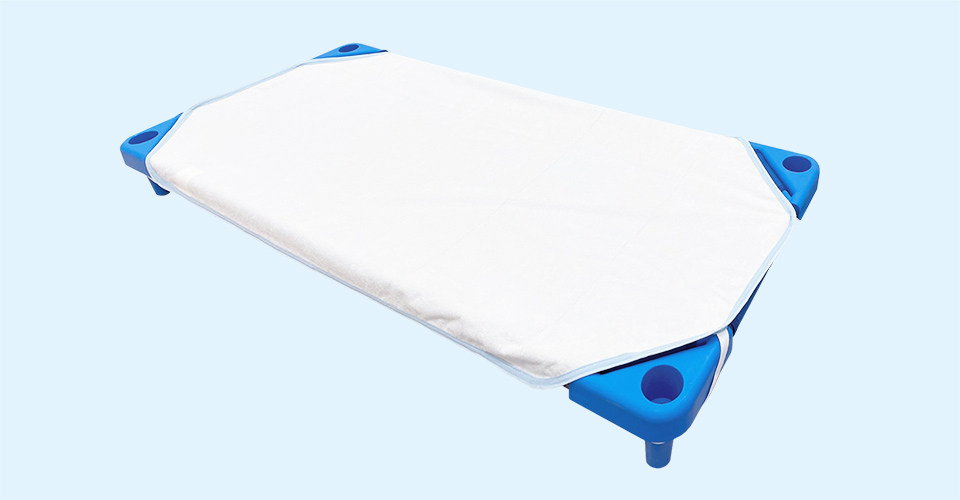 トット保育園上社では一部ふわっこめいと(コットタイプ)を導入しています。タオルケットは今治タオルですので吸水性もよく、コットは通気性がよいので寝汗が少なくお子さまも快適に寝られます。持参するお布団が必要ないので保護者に喜ばれています。