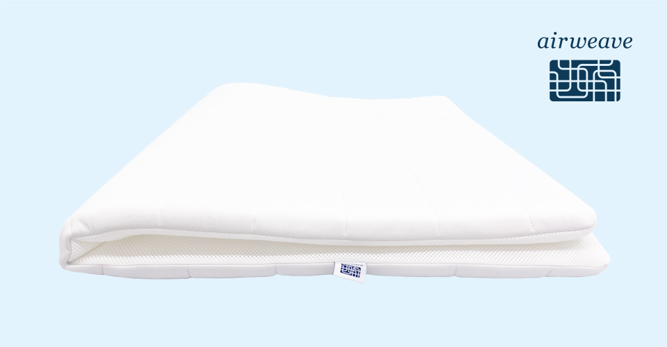 通気性に優れた「エアウィーヴ」。ふわっこめいとオリジナルサイズをご用意しました。小さなお子様の窒息するリスクが少ない安全性と良質な睡眠を提供します。