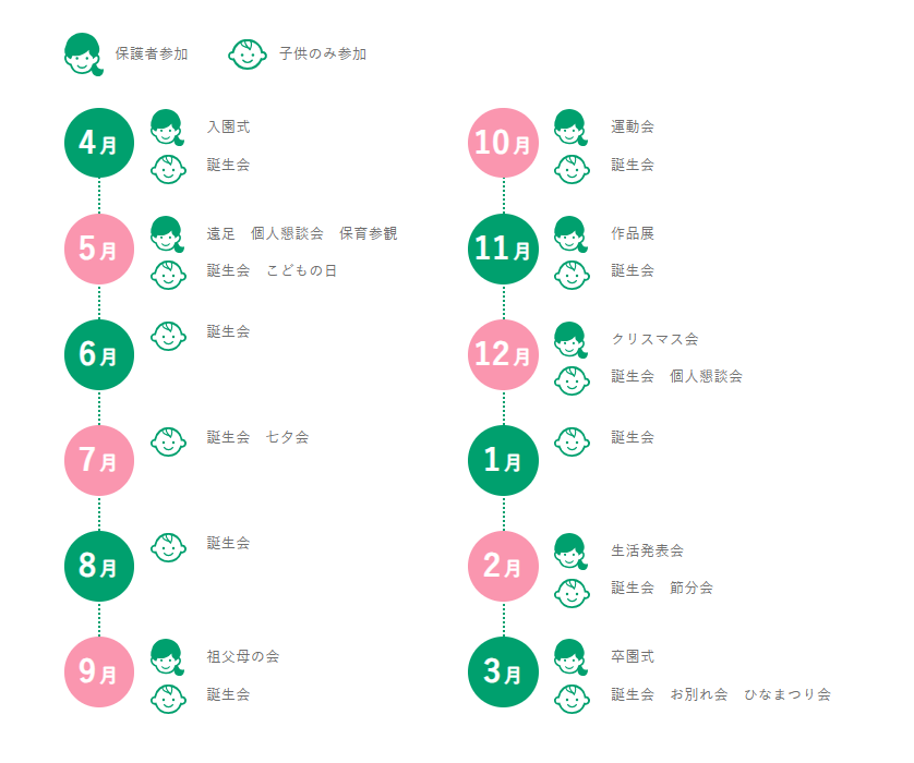 誕生日会等、毎月恒例で子どもたちが参加するものや、